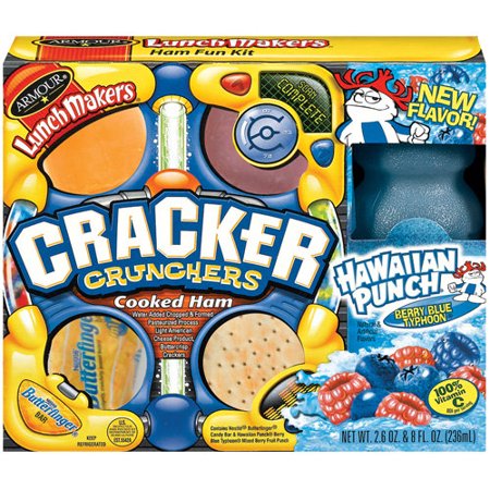 Hawaiian Punch Drink: Water, High Fructose Corn Syrup And 2% Or Less Of Each Of The Following: Concentrated Juices (Pineapple, Orange, Passionfruit, Apple), Purees (Apricot, Papaya, Guava), Citric Acid, Natural And Artificial Flavors, Pectin, Gum Acacia, Glycerol Ester Of Wood Rosin, Sodium Hexametaphosphate, Blue 1, Potassium Sorbate, Ascorbic Acid (Vitamin C), Cooked Ham Water Added: Cured With Water, Salt, Dextrose, Contains 2% Or Less Of Potassium Lactate, Sodium Diacetate, Sodium Erythorbate, Sodium Lactate, Sodium Nitrite, Sodium Phosphate, Light Pasteurized Process American Cheese: Cheddar Cheese (Cultured Milk, Salt, Enzymes), Water, Whey, Milk Protein Concentrate, Cultured Skim Milk, Skim Milk, Cheese Culture, Enzymes, Sodium Citrate, Modified Food Starch, Enzyme-modified Cheese (Cultured Milk, Water, Salt, Sodium Citrate, Cream, Sodium Phosphate, Sorbic Acid ), Potassium Citrate, Lactic Acid, Sorbic Acid, Artificial Color, Soy Lecithin, Buttercrisp Crackers: Enriched Flour (Wheat Flour, Niacin, Reduced Iron, Thiamine Mononitrate (Vitamin B1), Riboflavin (Vitamin B2), Folic Acid), Partially Hydrogenated Soybean, Cottonseed Oil With Tbhq For Freshness, Sugar, Contains 2% Or Less Of Salt, Corn Syrup, Leavening (Baking Soda, Sodium Acid Pyrophosphate, Monocalcium Phosphate), Butter (Cream, Salt), Soy Lecithin, Butterfinger Bar: Sugar, Ground Roasted Peanuts, Hydrogenated Palm Kernel Oil, Cocoa, Molasses, Less Than 1% Of Whey (From Milk), Confectioner&39,s Corn Flakes, Nonfat Milk, Lactic Acid Esters, Soy Lecithin, Soybean Oil, Corn Starch, Artificial Flavors, Tbhq And Citric Acid (To Preserve Freshness), Yellow 5, Red 40, Contains: Milk, Peanuts, Soy, Wheat