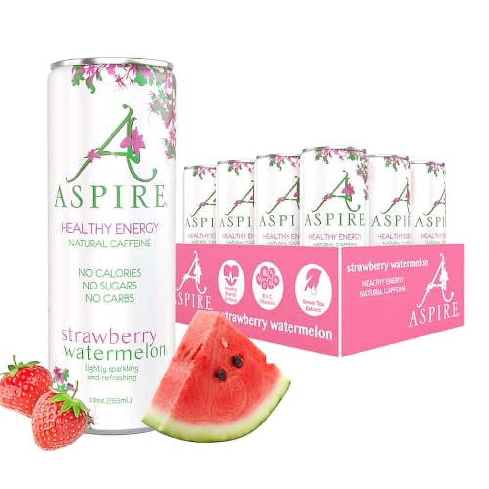 Aspire Healthy Energy Strawberry Watermelon Drink with Natural Caffeine - No Calories, Sugar and Carbs | Vitamins B, C, & Biotin | No Preservatives, Gluten Free | Suitable for Vegan, Kosher, Keto-Frie