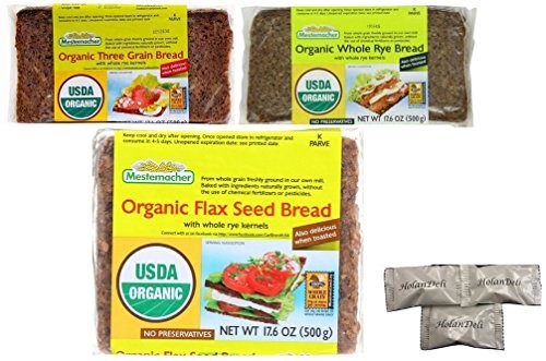 Assorted Mestemacher German Organic Bread (Whole Rye, Flax and Chia Seed, Amaranth Quinoa). Includes Our Exclusive HolanDeli Chocolate Mints.