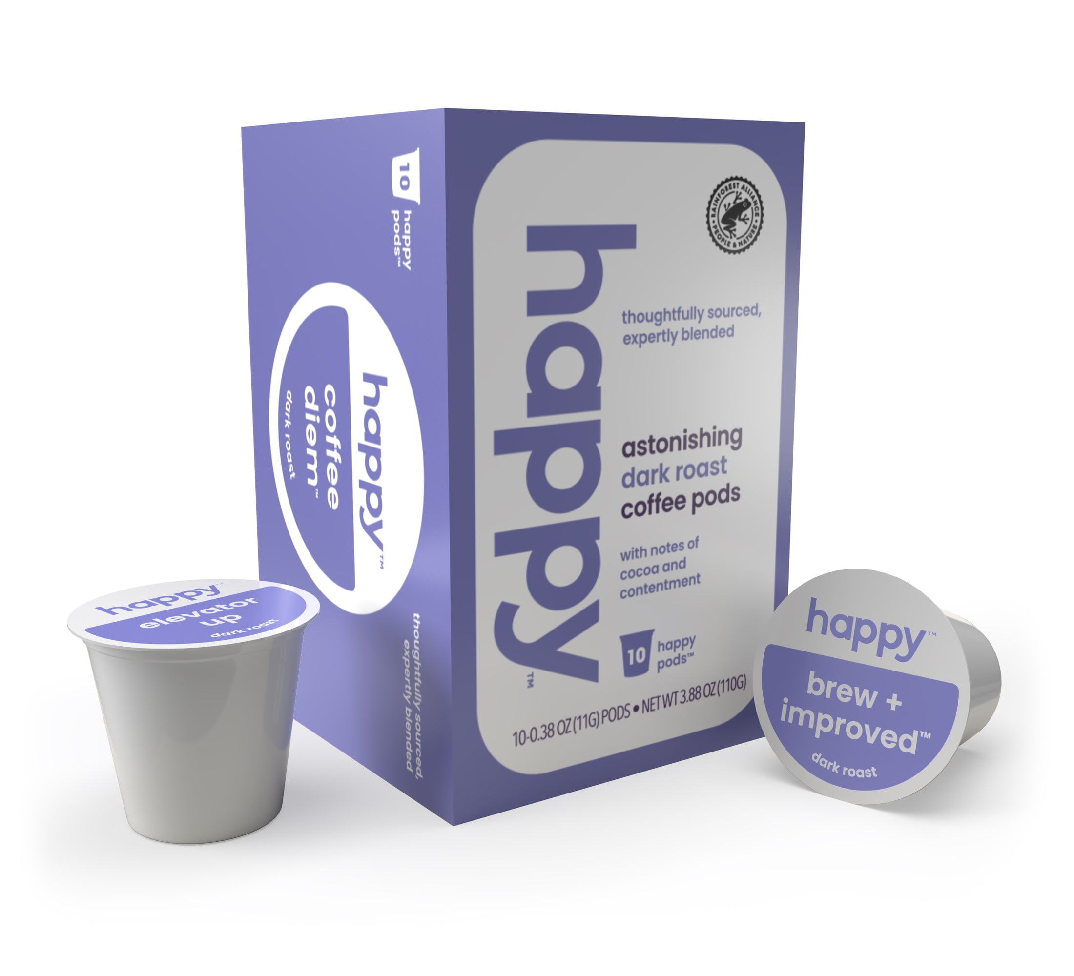 Happy Astonishing Dark Roast Coffee Pods 10 Pods Box Expiration Date Always Fresh happy coffee coffee pods, 10 count, notes of coco and contentment, compatible with most K-cup brewers.