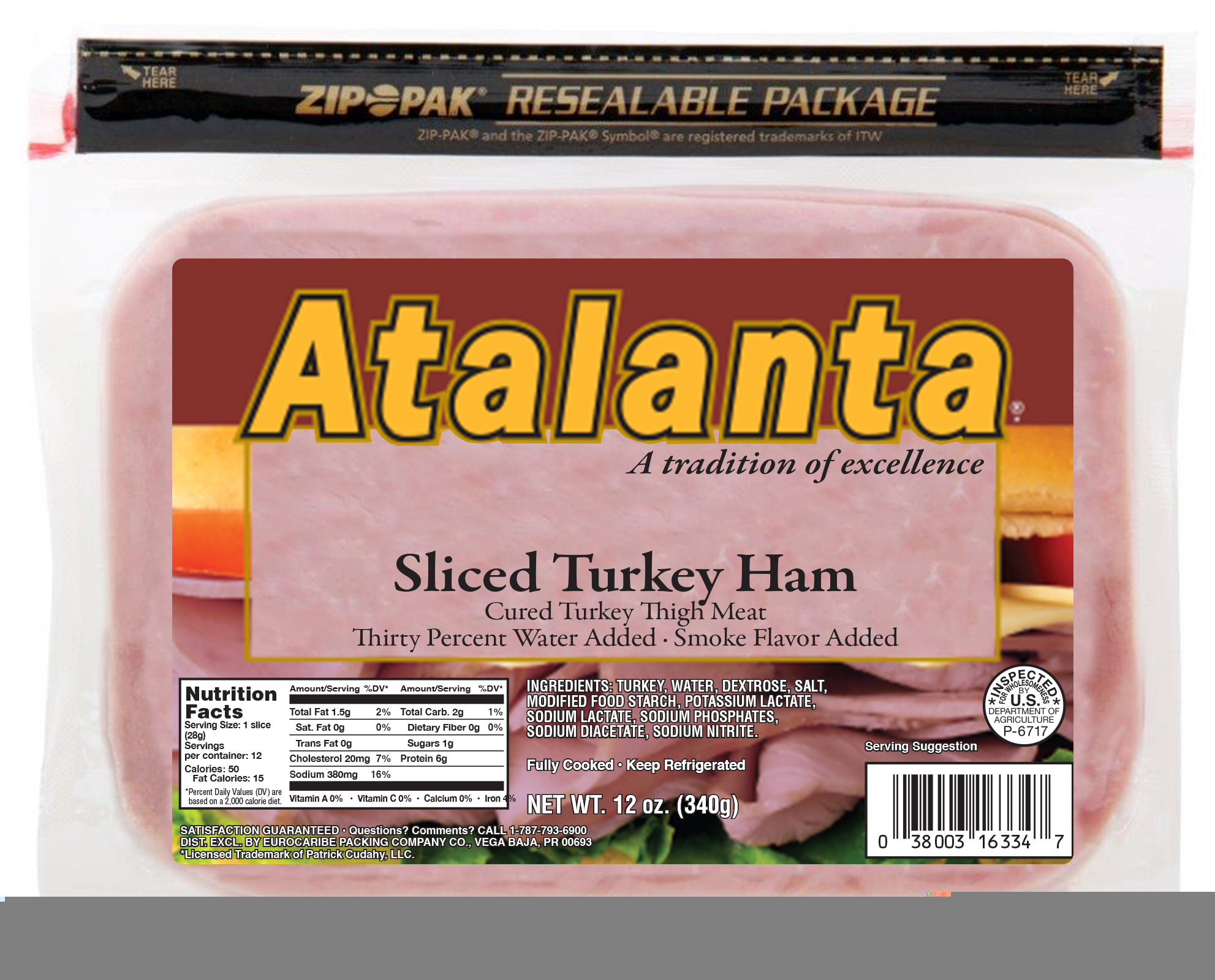Atalanta Sliced Turkey Ham, 8 Oz.