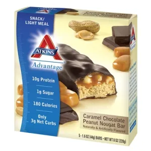 Atkins Protein Snack Bar, Caramel Chocolate Peanut Nougat, 9g Protein, 5 Ct
