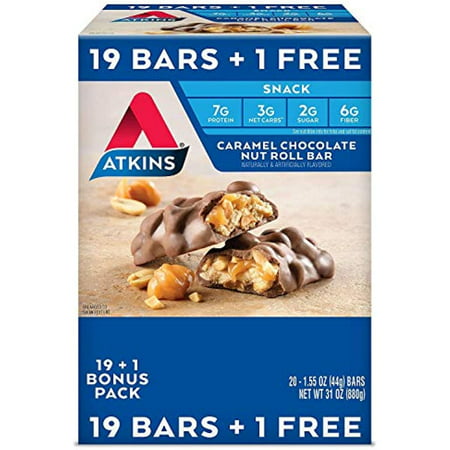 Atkins Snack Bar, Caramel Chocolate Nut Roll, 20 Count
