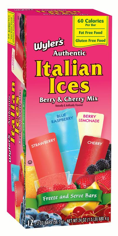 AUTHENTIC ITALIAN ICES BARS, BERRY & CHERRY MIX, BERRY LEMONADE, CHERRY, BLUE RASPBERRY, STRAWBERRY