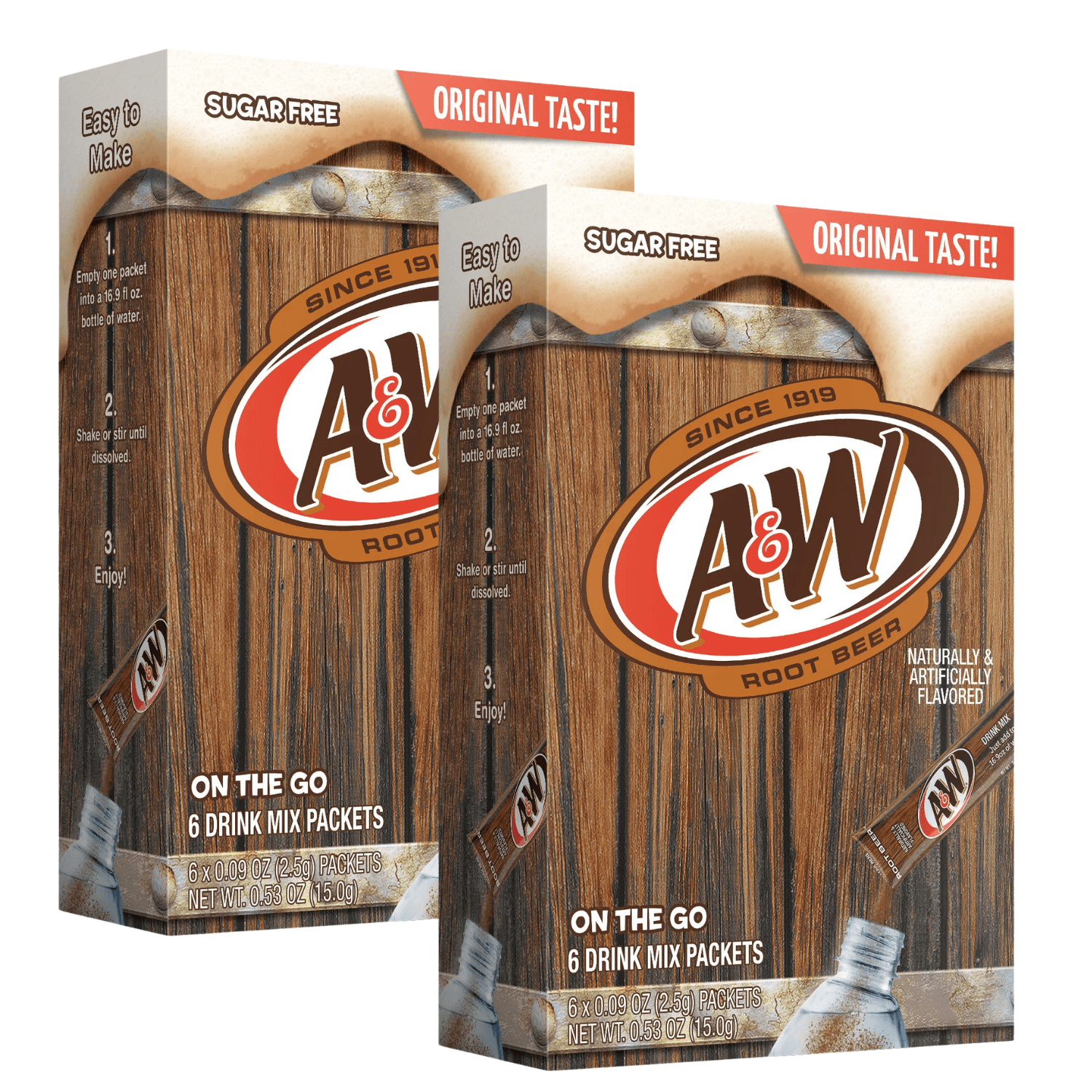 A&W Root Beer Caffeine and Sugar-Free Non-Carbonated Soda Pop Classic On-the-Go Water Drink Mix Packets for Lunch Picnics Gym Bags Backpack & Pocket - 2 BOXES (12 servings)