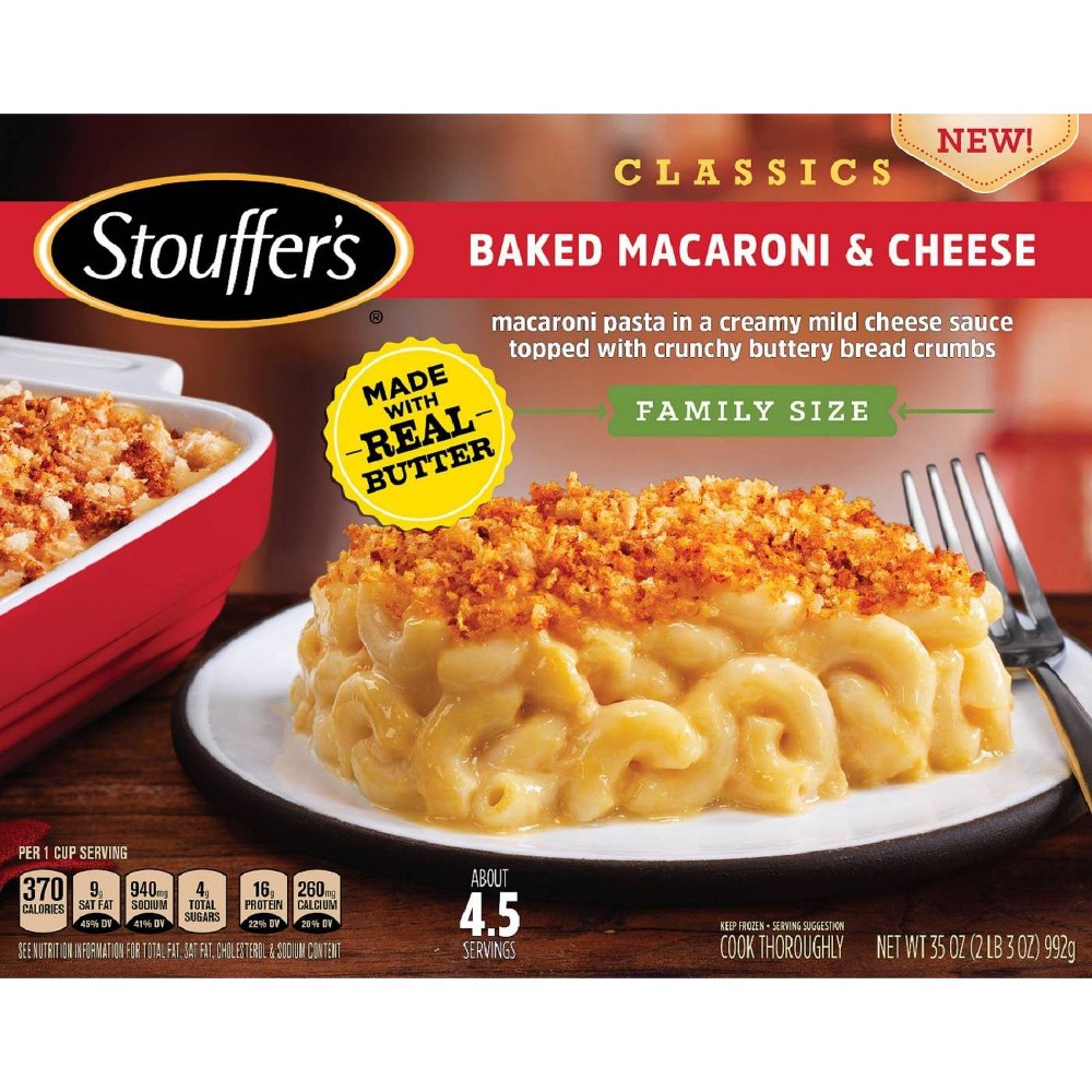 cooked macaroni (water , semolina wheat flour , wheat gluten), skim milk, water, cheddar cheese (cultured milk , salt , enzymes , annatto (color)), american cheese spread (cheddar and colby cheese (cultured milk , salt , enzymes) , water , whey , sodium phosphate , whey protein concentrate , skim milk , milkfat , salt , carrageenan , cellulose gum), eggs, cream, breadcrumbs (wheat flour , sugar , yeast , soybean oil , salt), butter (cream , salt), less of : modified cornstarch, cheddar club cheese (cheddar cheese (cultured milk , salt , enzymes) , water , salt , annatto color), romano cheese with flavor (romano cheese (cultured cow's milk , salt , enzymes) , enzyme modified romano cheese (romano cheese (cultured cow's milk , water , salt , enzymes) , salt)), salt, sour cream (cultured cream , nonfat milk), onions, bleached wheat flour, potassium chloride, paprika, turmeric, natural flavor, spices, xanthan gum