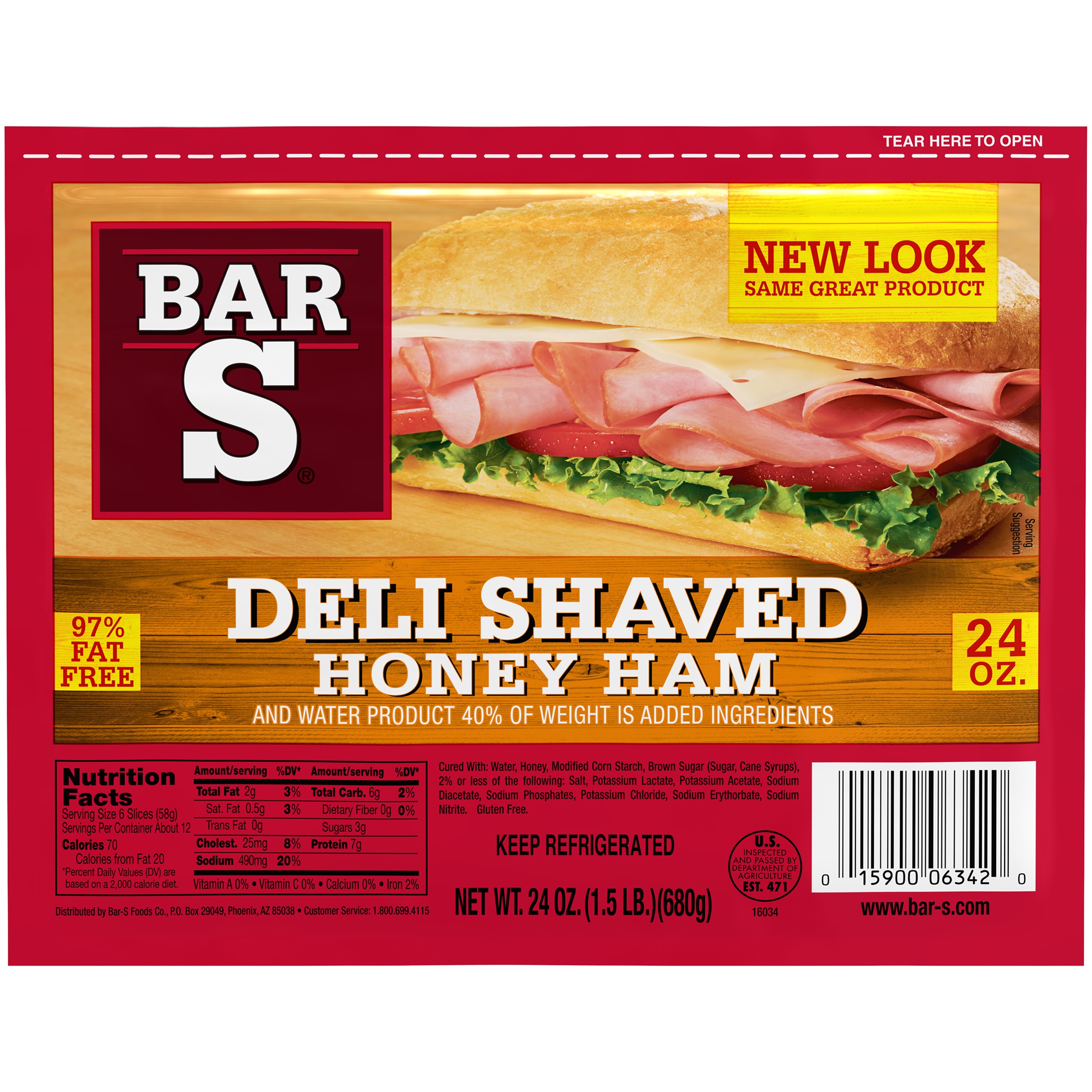 Bar S 97% Fat-Free Deli Shaved Honey Ham, 24 Oz.