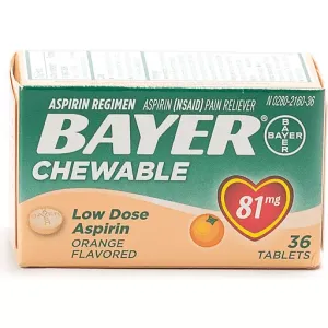 BAYER ASPIRIN PAIN RELIEVER/FEVER REDUCER LOW DOSE 81 MG ORANGE FLAVORED CHEWABLE TABLETS, 36 CT
