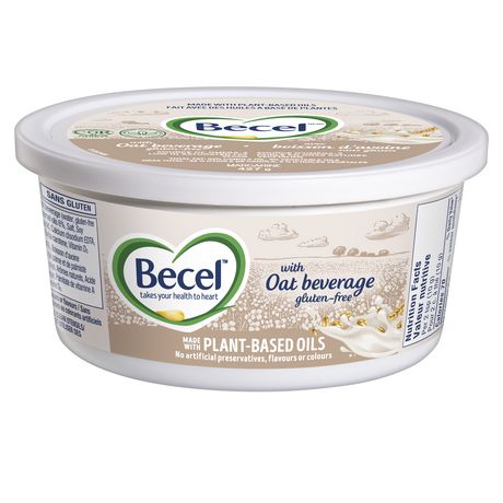 Canola oil 74%, Oat beverage (water, gluten-free oats), modified palm and palm kernel oils 6%, salt, soy lecithin, natural flavours, citric acid, calcium disodium EDTA, vitamin A palmitate (vitamin A), beta carotene, vitamin D2.
