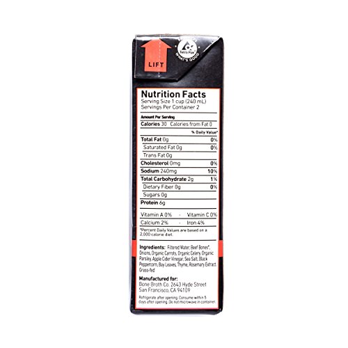 Marrow Bones From Pasture-raised, Grass-fed & Finished Cattle, Onions, Organic Carrots, Organic Celery, Organic Parsley, Sea Salt, Black Peppercorn, Bay Leaf, Thyme, Rosemary Extract, Apple Cider Vinegar