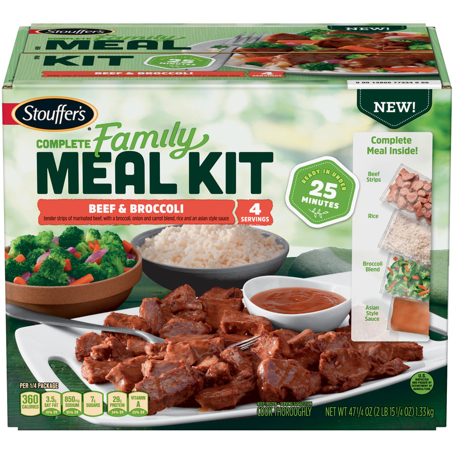 BEEF & BROCCOLI TENDER STRIPS OF MARINATED BEEF, WITH A BROCCOLI, ONION AND CARROT BLEND, RICE AND AN ASIAN STYLE SAUCE COMPLETE FAMILY MEAL KIT, BEEF & BROCCOLI