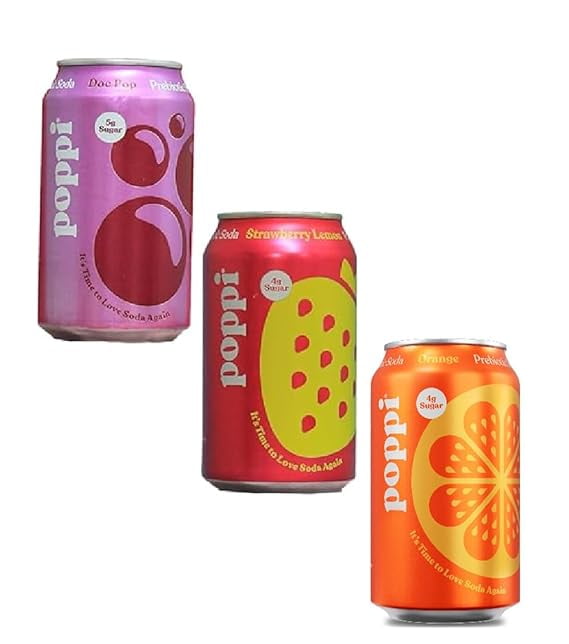Best Top Pick Poppi Sparkling Prebiotic Soda, Beverage, 12 Fl Ounce Can Variety Pack (Strawberry Lemon, Orange, Doc Pop) (Pack of 3)