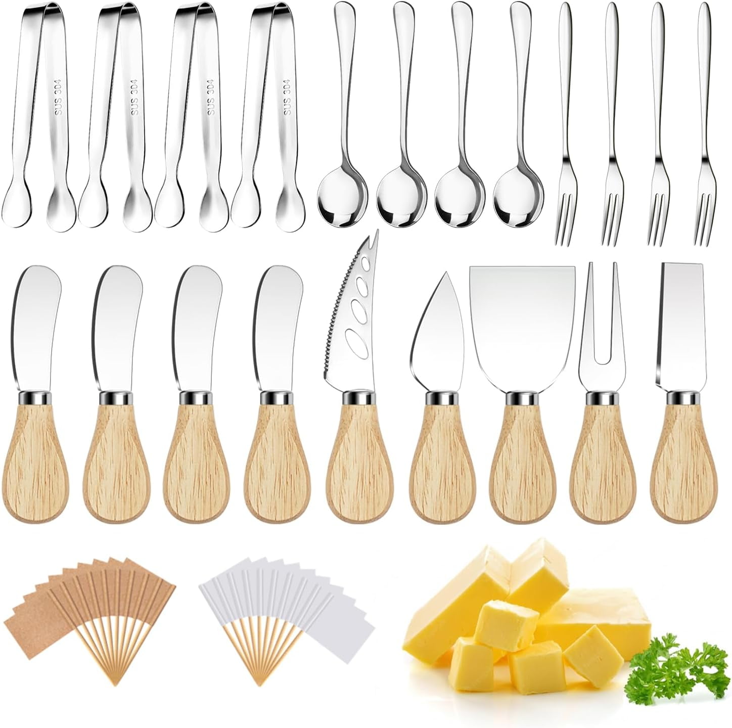 BESTKITTY arcuterie Boards Accories arcuterie Utensils eese Butter Spreader Knife Set with Wooden Handles Small Serving Tongs Mini s and Spoons Toothp Flags for Party Platter s