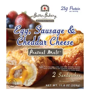 Better Bakery Egg, Sausage & Cheddar Cheese Pretzel Melt Sandwiches, 2 ct, 11.6 oz