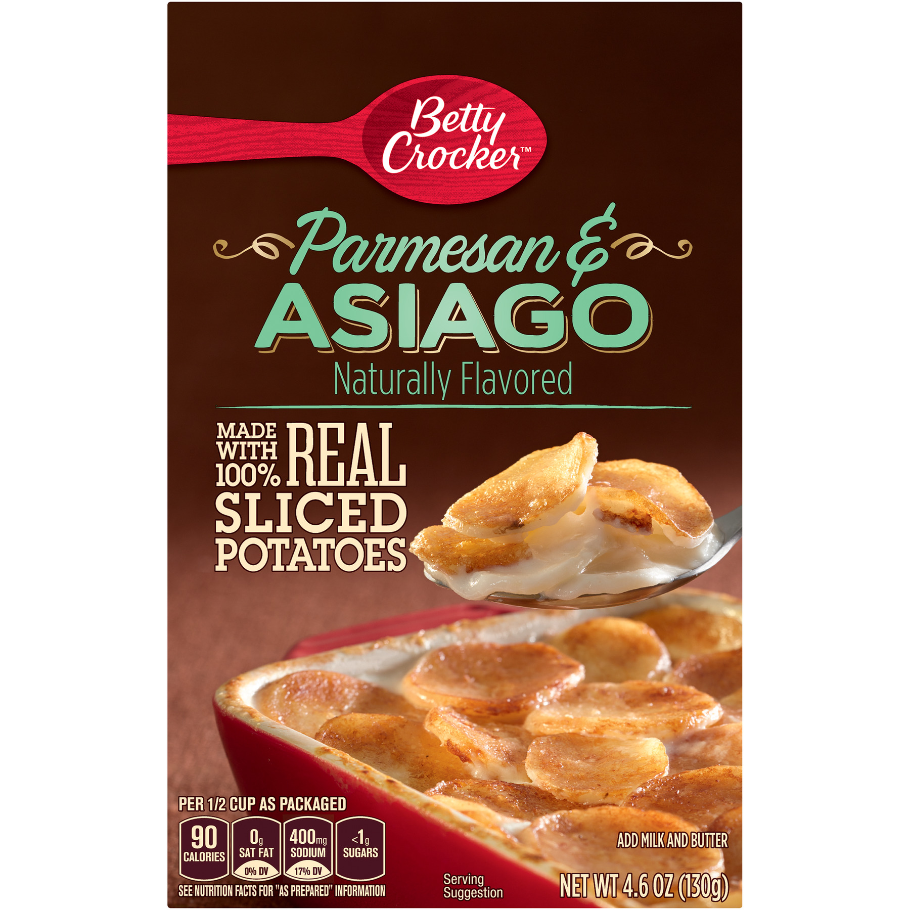BETTY CROCKER, SLICED POTATOES, PARMESAN & ASIAGO, PARMESAN & ASIAGO