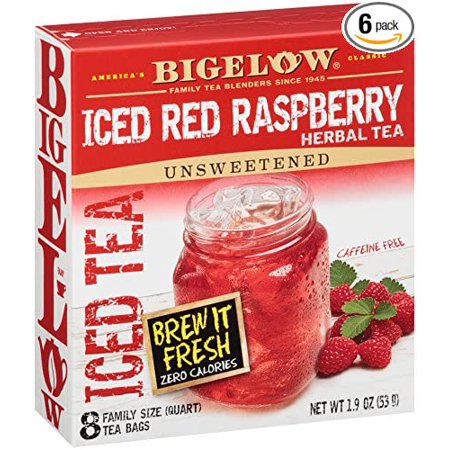 Bigelow Red Raspberry Iced Tea 8-Count Boxes (Pack of 6), 48 Tea Bags Total. Black Tea Bags for Brewing Iced Tea, Each Bag Brews One Quart of Delicious Iced Tea