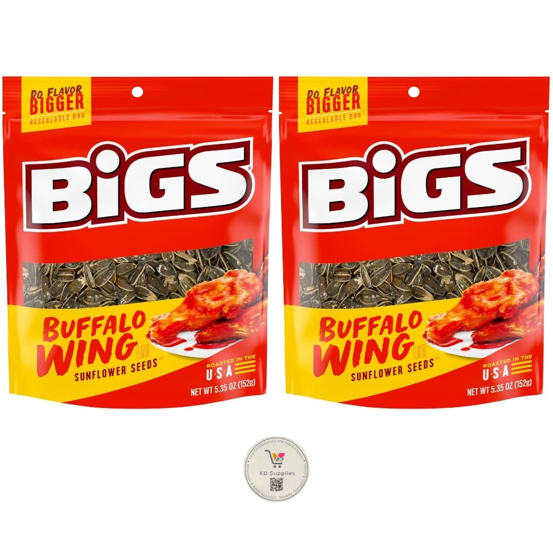 BIGS Sunflower Seeds, Keto Friendly 5.35 oz Bags Pack of 2 Buffalo Wing