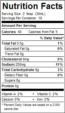 ORGANIC TOMATO PUREE, ORGANIC HONEY, ORGANIC MOLASSES, ORGANIC SUGAR, ORGANIC WHITE VINEGAR, WATER, ORGANIC SALTED BUTTER (ORGANIC PASTEURIZED CREAM, SALT), ORGANIC APPLE CIDER VINEGAR, CONTAINS LESS THAN 2% OF THE FOLLOWING: ORGANIC ONION, ORGANIC ORANGE JUICE CONCENTRATE, ORGANIC SPICES, SALT.