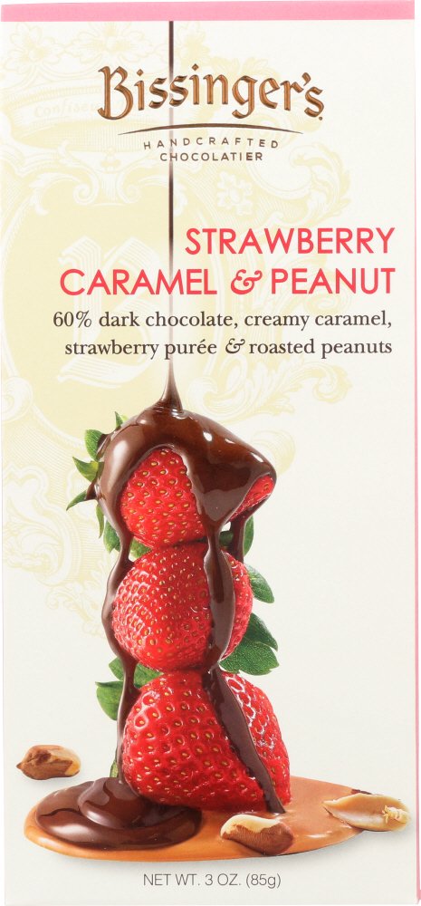 Bissingers Dark Chocolate Strawberry Caramel Peanut Bar, 3 Oz