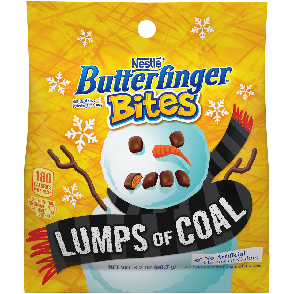BITE-SIZED PIECES OF BUTTERFINGER CANDY BITES LUMPS OF COAL