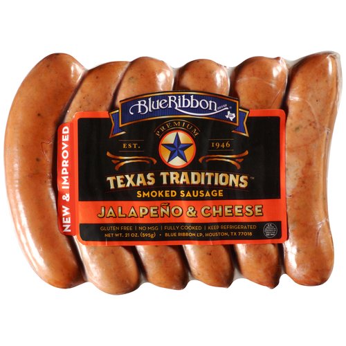 Blue Ribbon Texas Traditions Jalapeno & Cheese Smoked Sausage, 21 Oz., 6 Count