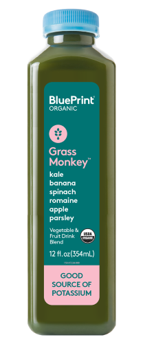 BLUEPRINT, GRASS MONKEY, ORGANIC VEGETABLE & FRUIT DRINK BLEND, KALE, BANANA, SPINACH, ROMAINE, APPLE, PARSLEY