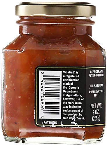 Sweet Vidalia Onions, Vinegar, Sugar, Tomatoes, Salt, Red Pepper, White Pepper, Garlic Powder, Spices, 93% Sweet Vidalia Onions, Spices
