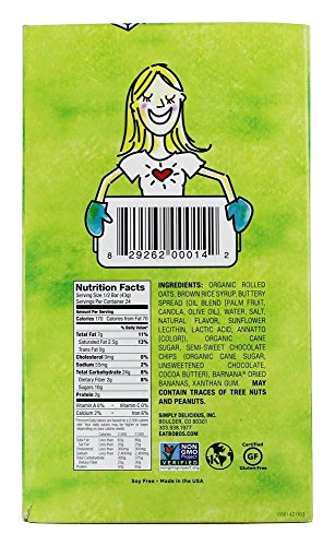 Organic Whole Grain Rolled Oats, Brown Rice Syrup, Organic Coconut Oil, Organic Cane Sugar, Barnana (R), Dried Bananas, Chocolate Chips (Chocolate Liquor, Cane Sugar, Cocoa Butter), Vegetable Glycerin, Xanthan Gum, Salt, Vitamin E (For Freshness), Contains Coconut, May Also Contain Traces Of Tree Nuts And Peanuts, Contains Coconut, May Also Contain Traces Of Tree Nuts And Peanuts