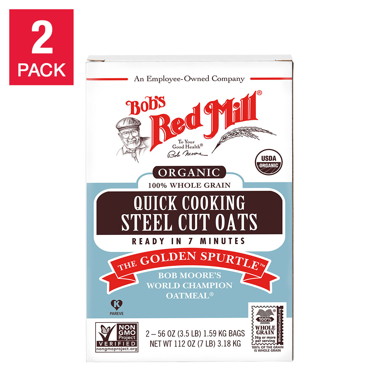 Bob's Red Mill Organic Quick-Cooking Steel Cut Oats are made from whole oat groats that have been cut into several tiny pieces. These steel cut oats are quick-cooking, meaning they are ready to eat in just about 7 minutes. They are also organic, ensuring a wholesome and natural product. People believe that these steel cut oats are quick-cooking and have had success cooking them on multiple occasions. Bob's Red Mill Organic Quick-Cooking Steel Cut Oats are a convenient and nutritious option for those looking for a quick and healthy breakfast.