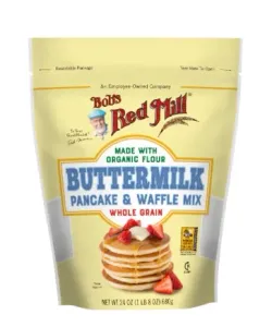 Bob's Red Mill Buttermilk Whole Grain Pancake Waffle Mix is a nutritious and flavorful option for a delicious breakfast. Made with whole grain flour and organic ingredients, this mix is not only tasty but also provides excellent sources of dietary fiber and protein, with 8g of protein per serving. It is suitable for vegetarians and is certified kosher dairy. People love these pancakes, finding them easy to cook and praising their great taste. They are also enjoyed with bananas. The mix is versatile, allowing you to make fluffy pancakes or waffles. Overall, Bob's Red Mill Pancake Waffle Mix is a healthy and satisfying choice for breakfast.