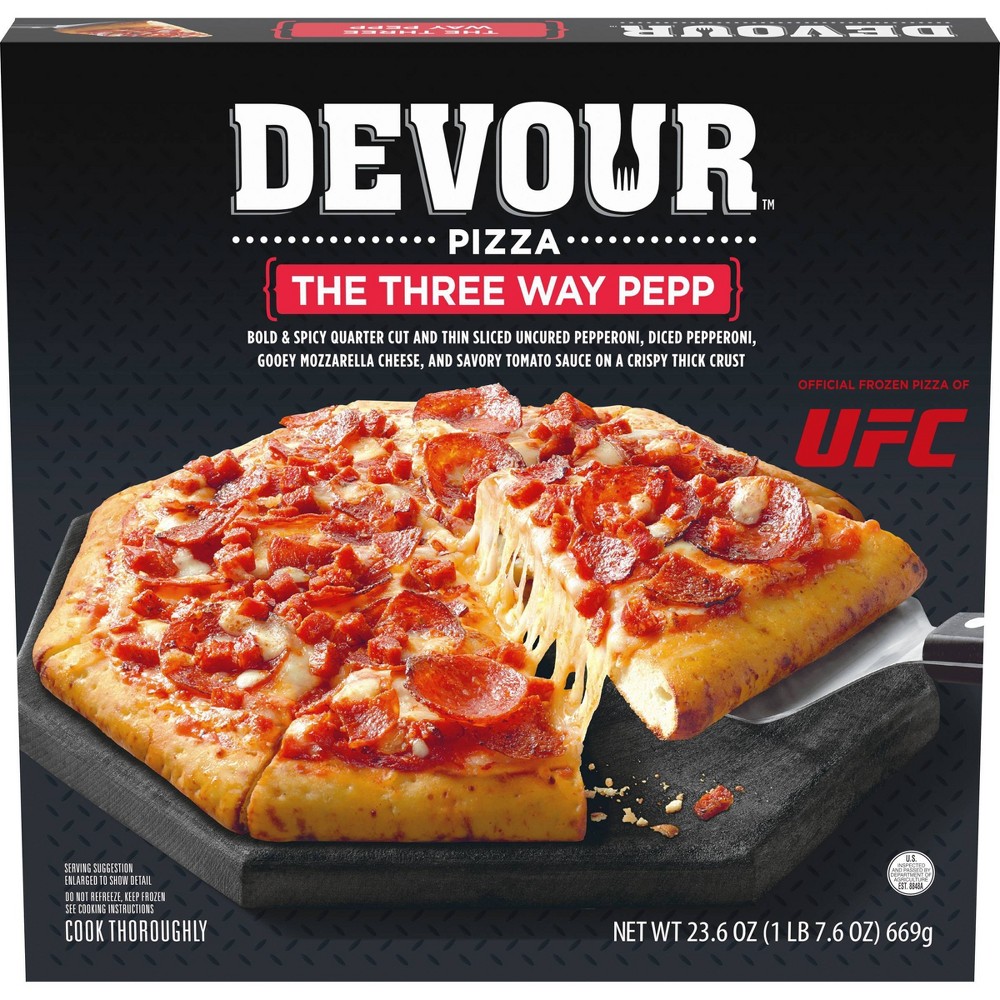 BOLD & SPICY QUARTER CUT AND THIN SLICED UNCURED PEPPERONI, DICED PEPPERONI, GOOEY MOZZARELLA CHEESE, AND SAVORY TOMATO SAUCE ON A CRISPY THICK CRUST PIZZA, THE THREE WAY PEPP