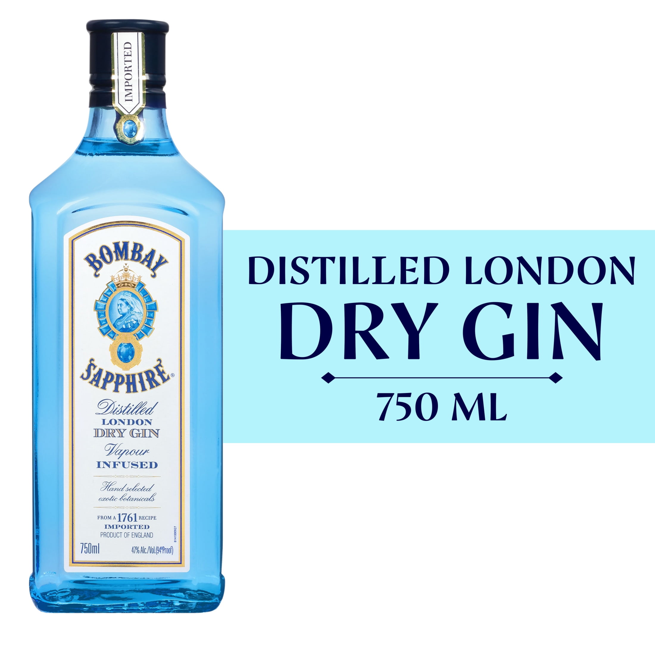 Bombay Sapphire Gin, 750 mL Blue Bottle, ABV 47%
