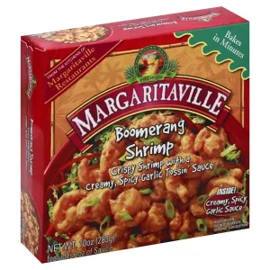SHRIMP, BLEACHED WHEAT FLOUR, WATER, VEGETABLE OIL (CONTAINS ONE OR MORE OF THE FOLLOWING: SOYBEAN, CORN AND/OR COTTONSEED OIL), WHEAT FLOUR, MODIFIED CORN STARCH, CONTAINS 2% OR LESS OF: SALT, SEA SALT, YELLOW CORN FLOUR, SUGAR, SPICES, ENRICHED WHEAT FLOUR (FLOUR, NIACIN, REDUCED IRON, THIAMINE MONONITRATE, RIBOFLAVIN, FOLIC ACID), SPICES, SODIUM TRIPOLYPHOSPHATE (TO RETAIN MOISTURE), MALIC ACID, YEAST, MALTODEXTRIN, EGG WHITES, LEAVENING (SODIUM ACID PYROPHOSPHATE, SODIUM BICARBONATE, MONOCALCIUM PHOSPHATE), CORN STARCH, CITRIC ACID, CALCIUM CHLORIDE, NONFAT MILK, SODIUM BISULFITE (AS A PRESERVATIVE). BOOMERANG SAUCE: WATER, SOYBEAN OIL, SUGAR, VINEGAR, CAYENNE PEPPERS, RICE STARCH, GARLIC, CLAM JUICE, WHOLE EGG POWDER, SALT, MALTODEXTRIN, POLYSORBATE, PROPYLENE GLYCOL ALGINATE, EXTRACTIVES OF CAPSICUM, XANTHAN GUM, CARAMEL COLOR, SODIUM BENZOATE AND POTASSIUM SORBATE (PRESERVATIVES).