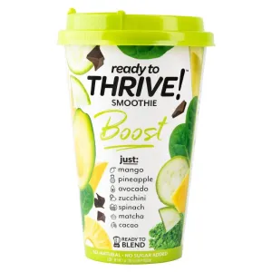 BOOST SMOOTHIE, MANGO, PINEAPPLE, AVOCADO, ZUCCHINI, SPINACH, MATCHA, CACAO