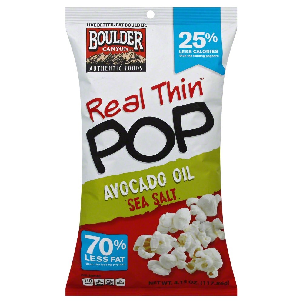 BOULDER CANYON, REAL THIN POP POPCORN, AVOCADO OIL SEA SALT, AVOCADO OIL SEA SALT