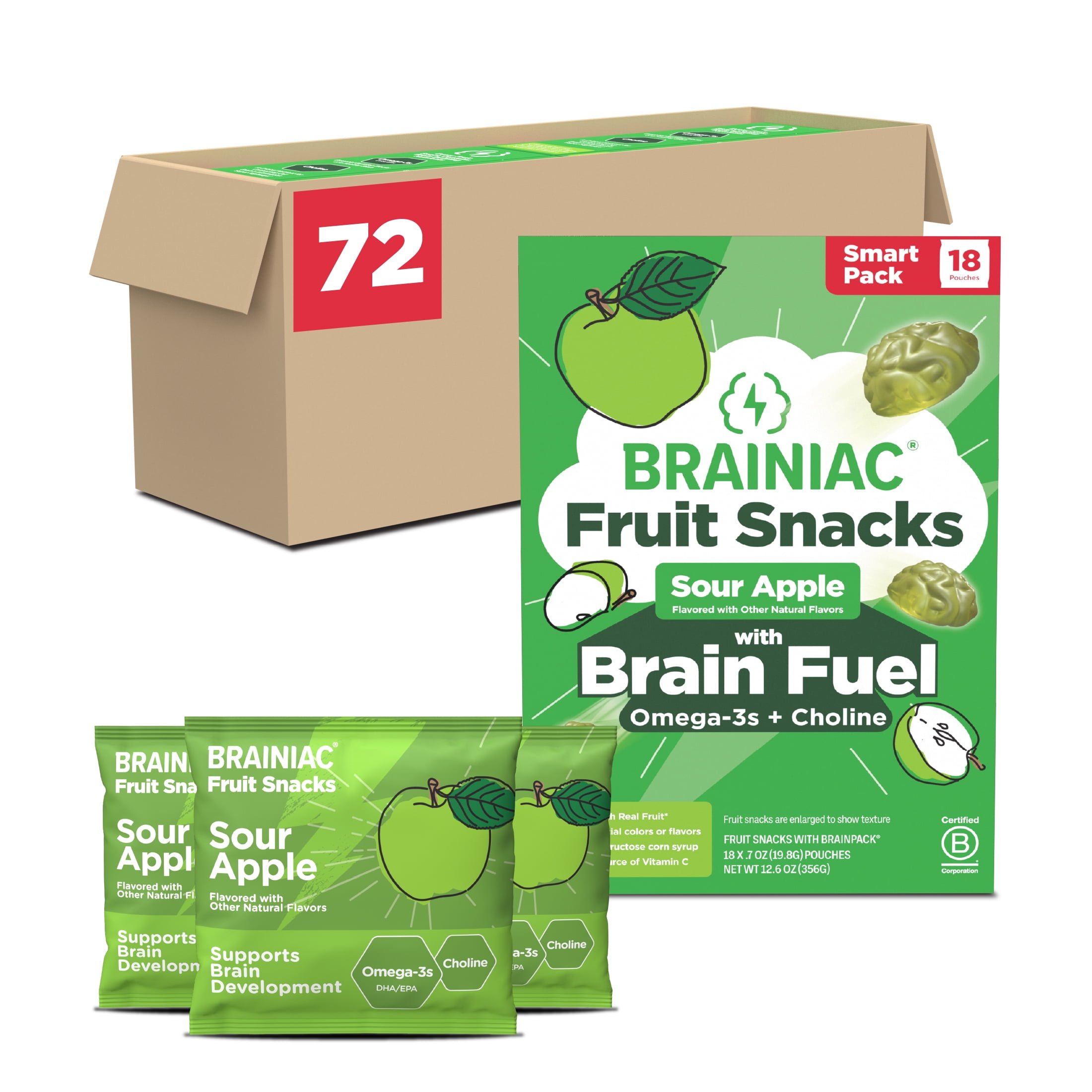 Brainiac Fruit Snacks with BrainPack, Sour Apple Flavor, 72ct