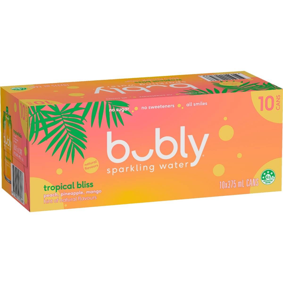 Bubly Sparkling Water Cans Tropical Bliss 375mL x 10 pack