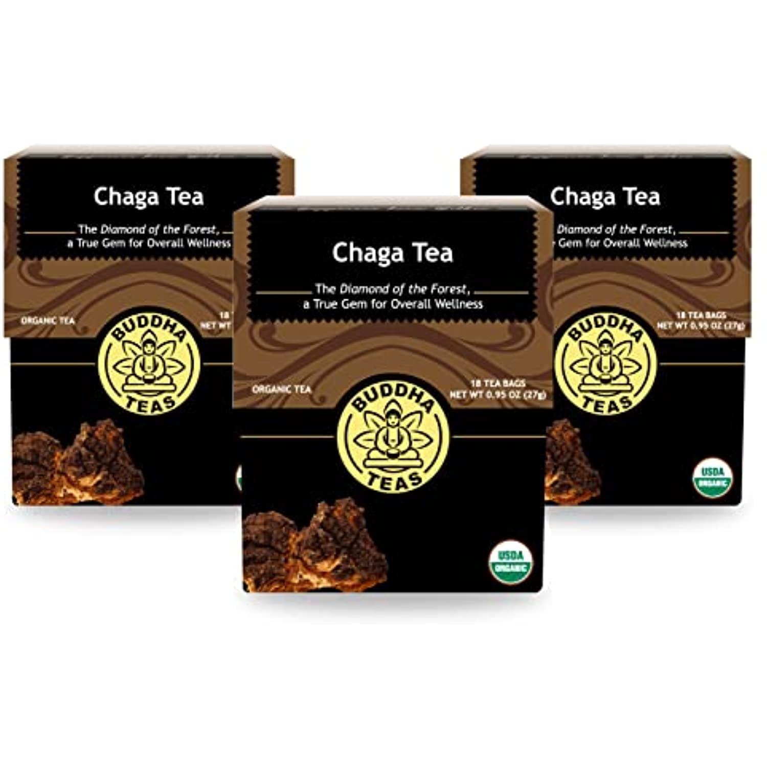 Buddha Teas Organic Chaga Mushroom Tea - Ou Kosher, Caffeine-Free, Gmo-Free - 18 Bleach-Free Tea Bags (Pack Of 3)