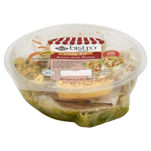 CHILI AND ONION FLOUR TORTILLA (ENRICHED UNBLEACHED FLOUR [WHEAT FLOUR, NIACIN, REDUCED IRON, THIAMINE MONONITRATE, RIBOFLAVIN, FOLIC ACID], WATER, HOUSE BLEND [CULTURED WHEAT, MONO- AND DIGLYCERIDES, SALT, SODIUM ACID PYROPHOSPHATE, SODIUM BICARBONATE, SUGAR, CITRIC ACID, YEAST, GUAR GUM AND ENZYMES], SOYBEAN OIL, ONION POWDER, TORTILLA FRESHNESS [WHEAT FLOUR, MONOGLYCERIDES, ENZYMES], RED CHILIES, DISTILLED WHITE VINEGAR, ISOLATED OAT PRODUCT, FUMARIC ACID AND POTASSIUM SORBATE [AS PRESERVATIVES], CALCIUM PROPIONATE [AS A PRESERVATIVES], CELLULOSE GUM), ICEBERG LETTUCE, CHICKEN BREAST WITH RIB MEAT (CHICKEN BREAST WITH RIB MEAT, WATER, SODIUM LACTATE, SEASONING [SALT, SUGAR, ARTIFICIAL CHICKEN FLAVOR {WITH HYDROLYZED CORN PROTEIN, AUTOLYZED YEAST EXTRACT, THIAMINE HYDROCHLORIDE, DISODIUM INOSINATE, DISODIUM GUANYLATE}, DEXTROSE, NATURAL FLAVORINGS], MODIFIED POTATO STARCH, DEXTROSE, POTASSIUM LACTATE, SODIUM PHOSPHATE, SODIUM DIACETATE), CORN, BUFFALO SAUCE (CAYENNE PEPPER SAUCE [AGED CAYNENNE RED PEPPERS, DISTILLED VINEGAR, WATER, SALT, GARLIC POWDER], CLARIFIED BUTTER OIL [MILK], XANTHAN GUM, WATER, POLYSORBATE 60), MILD CHEDDAR CHEESE (CHEDDAR CHEESE [PASTEURIZED MILK, CHEESE CULTURE, SALT, ENZYMES, ANNATTO {VEGETABLE COLOR}], POWDERED CELLULOSE [TO PREVENT CAKING], NATAMYCIN [A NATURAL MOLD INHIBITOR]), CARROTS, CELERY.
