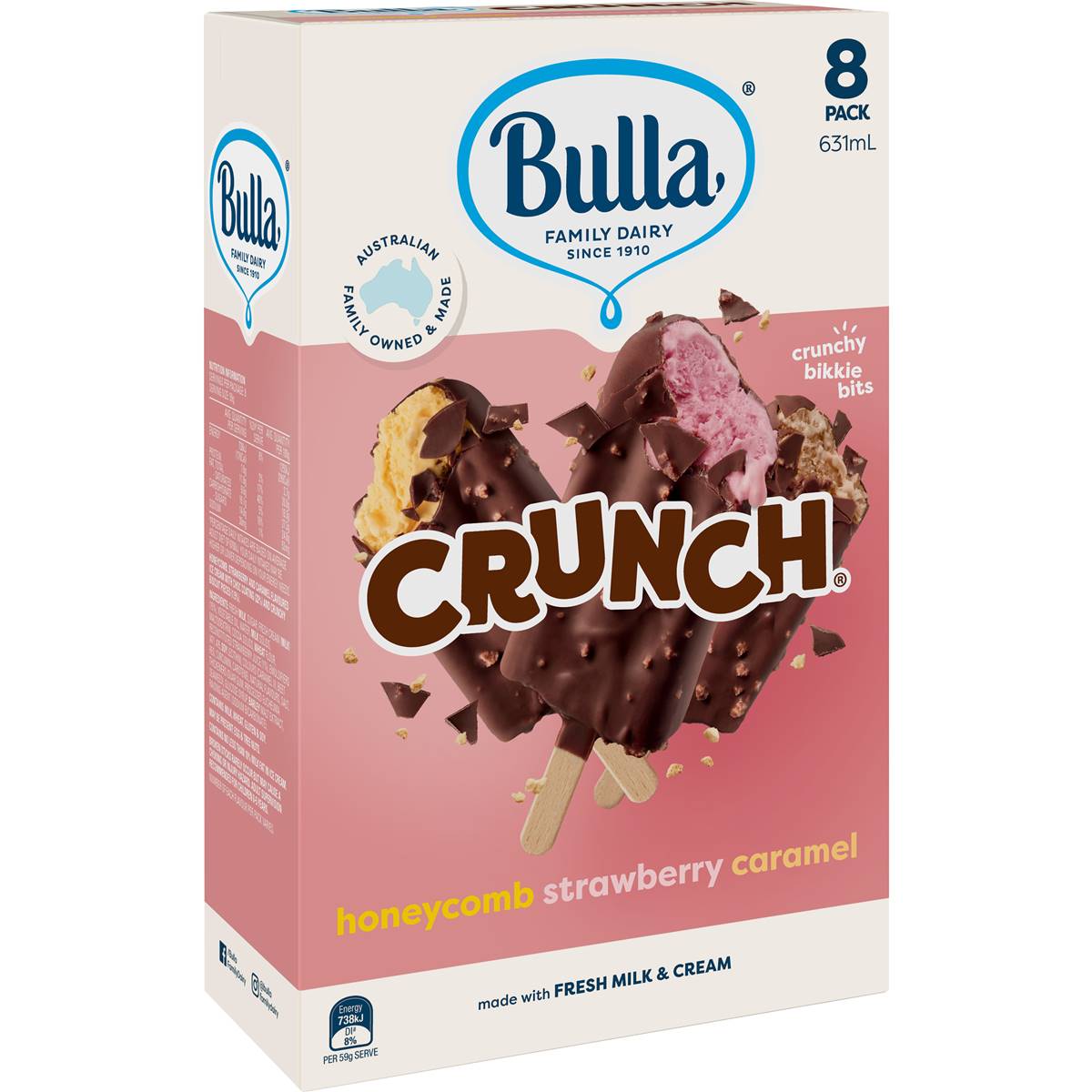 Bulla Crunch Caramel, Strawberry & Honeycomb 8 pack