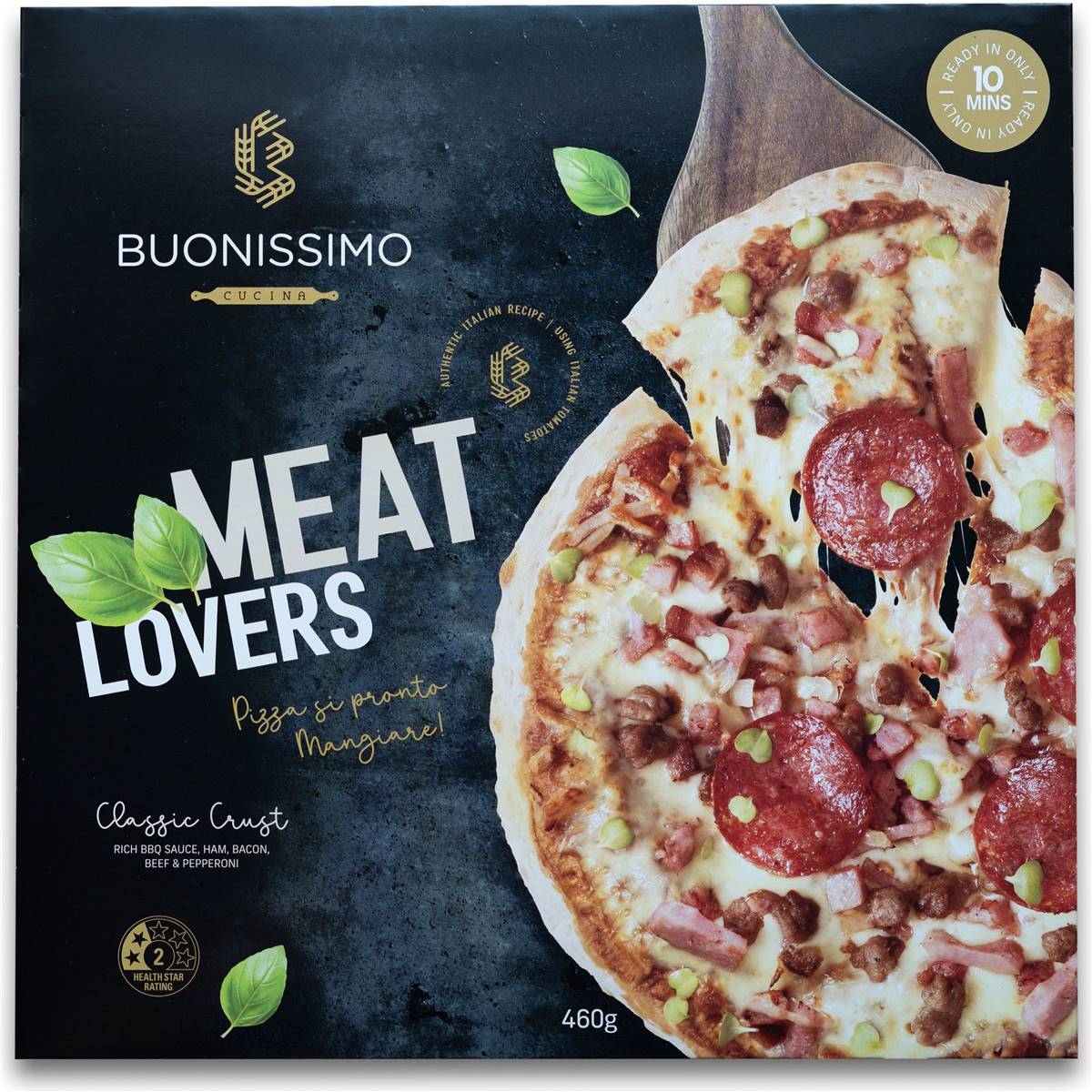 Base (Bakers Flour (Wheat Flour, Thiamine, Folic Acid), Water, Salt, Olive Oil, Yeast (Instant Active Dried Yeast, Emulsifier (491), Vegetable Oil (Soy), Ascorbic Acid), Bread Improver (Wheat Flour, Mineral Salts (341, 516), Malt Flour, Antioxidant (Ascorbic Acid), Enzyme (Amylase)), Caster Sugar (Sugar)), Barbeque Sauce (14%) (Tomatoes, Sugar, Cornflour (Wheat), Food Acids (Acetic, Citric), Salt, Water, Corn Syrup Solids (Wheat), Colour (150c), Vegetable Gum (Pectin), Tamarind Extract, Spices), Mozzarella Cheese (10%) (Cheese (Milk, Salt, Coagulant Enzyme, Starter Culture), Anticaking Agent (Tapioca), Preservative (200)), Shredded Ham (8%) (Pork, Water, Modified Starch (1412), Tapioca Starch, Acidity Regulators (326, 325, 262), Salt, Wheat Fibre (Gluten Free), Sugar, Mineral Salts (451, 450), Rice Flour, Vegetable Gum (407), Smoke Flavour, Colour (120), Potato Starch, Antioxidant (316), Preservative (250)), Bacon (6%) (Pork, Water, Cure (Salt, Sugar, Mineral (451, 450), Antioxidant (316), Preservative (250)), Wood Smoke), Ground Beef (3%) (Beef, Water, Textured Soy Protein, Salt, Spices, Dextrose, Sugar, Maltodextrin, Spice Extracts, Yeast Extracts, Flavour), Onion