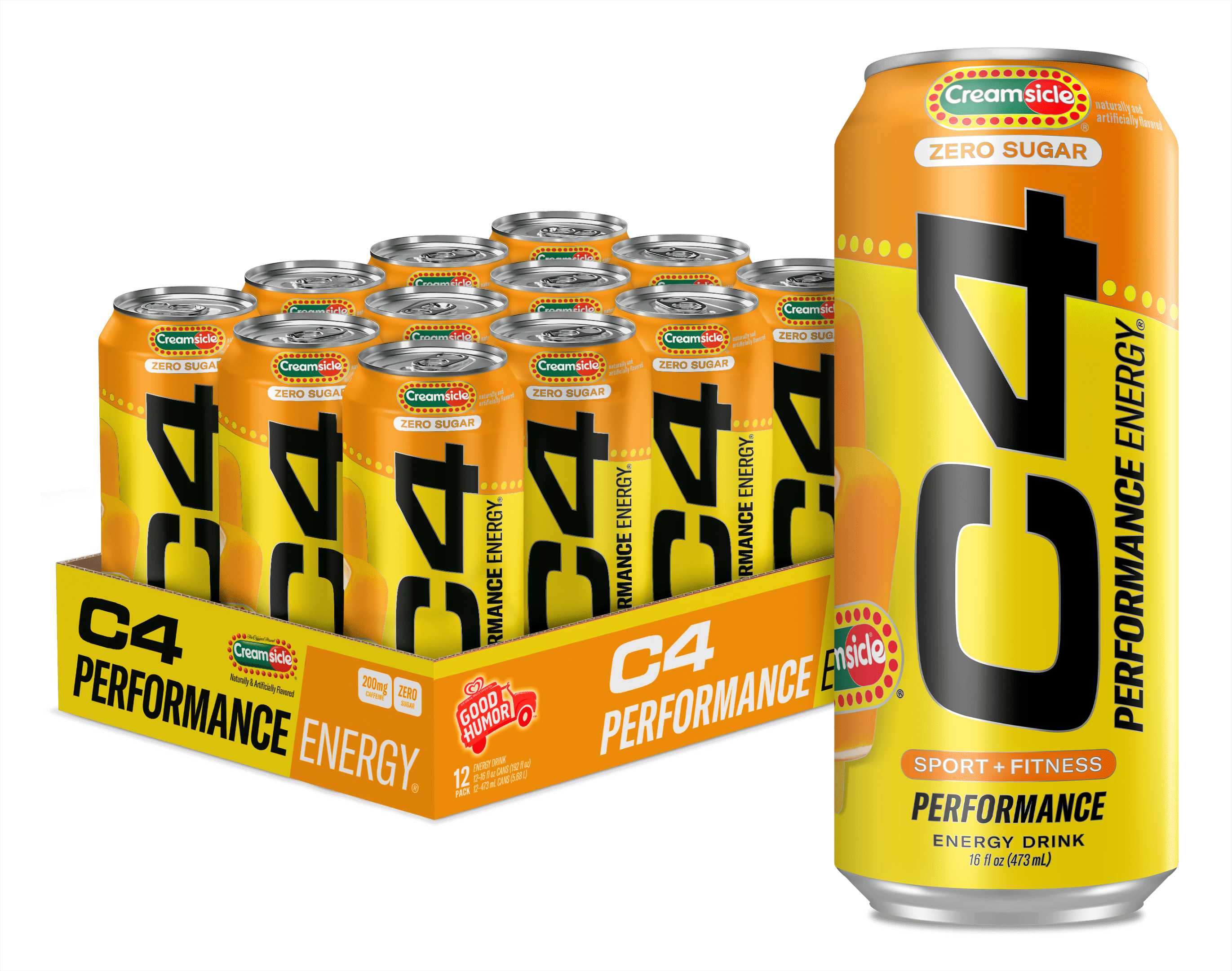 C4 Performance Energy Drink, Orange Creamsicle Flavor, Zero Sugar, Carbonated, 16 oz can (12 Pack)
