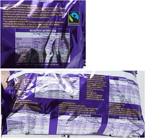 Cadbury Treatsize Fudge Fudge covered with milk chocolate (24%)Ingredients: Sugar, glucose syrup, palm oil, skimmed MILK powder, cocoa butter, cocoa mass, whey permeate (from MILK), MILK fat, emulsifiers (E471, sunflower lecithin, E442), flavourings, sodium hydrogen carbonate, salt.Cadbury Treatsize Crunchie Milk chocolate with golden honeycombed centre (40%)Ingredients: Sugar, glucose syrup, cocoa butter, cocoa mass, skimmed MILK powder, whey permeate powder (from MILK), palm oil, MILK fat, emulsifier (E442), flavourings, coconut oil.Cadbury Treatsize ChompMilk chocolate with a caramel centre (70%)Ingredients: Glucose syrup, sugar, palm oil, glucose-fructose syrup, skimmed MILK powder, cocoa butter, cocoa mass, whey permeate powder (from MILK), MILK fat, emulsifiers (sunflower lecithin, E471, E442), salt, sodium hydrogen carbonate, flavourings.Cadbury Dairy Milk Treatsize ButtonsMilk chocolatesIngredients: MILK**, sugar, cocoa butter, cocoa mass, vegetable fats (palm, shea), emulsifier (E442), flavourings. Cadbury Treatsize TwirlMilk chocolate fingerIngredients: MILK, sugar, cocoa butter, cocoa mass, vegetable fats (palm, shea), emulsifier (E442), flavourings.Cadbury Treatsize FlakeThe crumbliest, flakiest milk chocolateIngredients: MILK, sugar, cocoa butter, cocoa mass, vegetable fats (palm, shea), emulsifier (E442), flavourings. Cadbury Treatsize CrunchieMILK CHOCOLATE: MILK SOLIDS 14% MINIMUM.CONTAINS VEGETABLE FATS IN ADDITION TO COCOA BUTTER. Cadbury Treatsize ChompMILK CHOCOLATE: MILK SOLIDS 14% MINIMUM.CONTAINS VEGETABLE FATS IN ADDITION TO COCOA BUTTER. Cadbury Dairy Milk Treatsize ButtonsSugar, Cocoa: traded in compliance with Fairtrade Standards, total 70%. Visit www.info.fairtrade.net**The equivalent of 426ml of fresh liquid milk in every 227g of milk chocolateMILK SOLIDS 20% MINIMUM, ACTUAL 23%.COCOA SOLIDS 20% MINIMUM.CONTAINS VEGETABLE FATS IN ADDITION TO COCOA BUTTER.Cadbury Treatsize TwirlMILK SOLIDS 14% MINIMUM.COCOA SOLIDS 25% MINIMUM.CONTAINS VEGETABLE FATS IN ADDITION TO COCOA BUTTER.Cadbury Treatsize FlakeMILK SOLIDS 14% MINIMUM.COCOA SOLIDS 25% MINIMUM.CONTAINS VEGETABLE FATS IN ADDITION TO COCOA BUTTER..