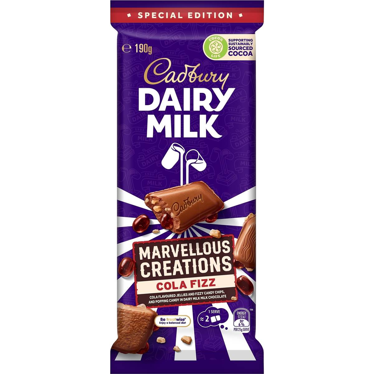 Cadbury Marvellous Creations Cola Fizz Chocolate Block 190g