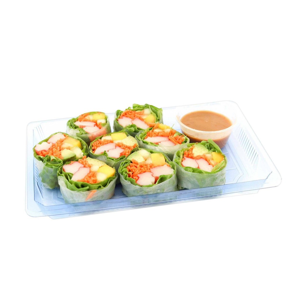 CARROTS, AVOCADO, CUCUMBER, CRABSTICK (FISH PROTEIN (ALASKA POLLOCK AND/OR PACIFIC WHITING, MSC CERTIFIED), WATER, CANE SUGAR, POTATO STARCH, TAPIOCA STARCH, EGG WHITE, CONTAINS LESS THAN 2% OF NATURAL FLAVOR (CRAB JUICE), POTASSIUM CHLORIDE, SALT, YEAST EXTRACT, SOY LECITHIN, COLOR ADDED (PAPRIKA, TOMATO LYCOPENE)), SWEET CHILI PEANUT SAUCE (WATER, SUGAR, PEANUT BUTTER, GLUTEN FREE SOY SAUCE [WATER, SOYBEANS, SALT], LEMON CONCENTRATE JUICE, SALT, ROASTED PEANUT, SALTED SAKE [SALTED RICE WINE], SPICES, XANTHAN GUM), RICE PAPER (TAPIOCA, RICE FLOUR, FILTERED WATER, SALT), LETTUCE, COOKED VERMICELLI BEAN THREAD NOODLE (WATER, BEAN THREAD NOODLE (MUNG BEAN, WATER)), MANGO PICKLES (MANGO, SUSHI VINEGAR (SUGAR, RICE VINEGAR, WATER, SALT, CITRIC ACID, KELP EXTRACT (KELP EXTRACT, SUGAR ALCOHOL, HYDROGENATED STARCH HYDROLYSATES, ALCOHOL, SALT, XANTHAN GUM)), CLOVER HONEY, CHILI PEPPER), PICKLED GINGER (GINGER, WATER, SALT, SUGAR, VINEGAR).