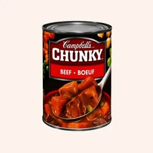 Rich, savory flavor with chunky, thick texture and sizable pieces; commonly used as a quick lunch, simple dinner, or emergency pantry meal. Reviewers frequently cite convenience and hearty satisfaction, noting portable reheating, occasional uneven chunk distribution, and sometimes pronounced saltiness. Users note quick reheating and filling portions for busy meals.