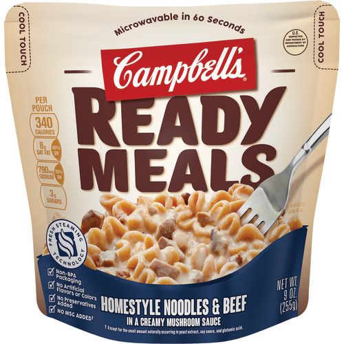 CAMPBELL'S, HOMESTYLE NOODLES & BEEF IN A CREAMY MUSHROOM SAUCE