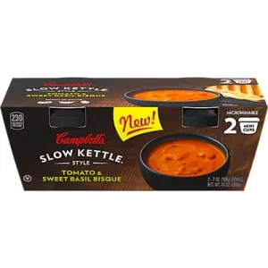 Campbell's Slow Kettle Style Microwave Soup, Tomato & Sweet Basil Bisque, Lunch Snack, 7 Ounce Cup (2 pack)