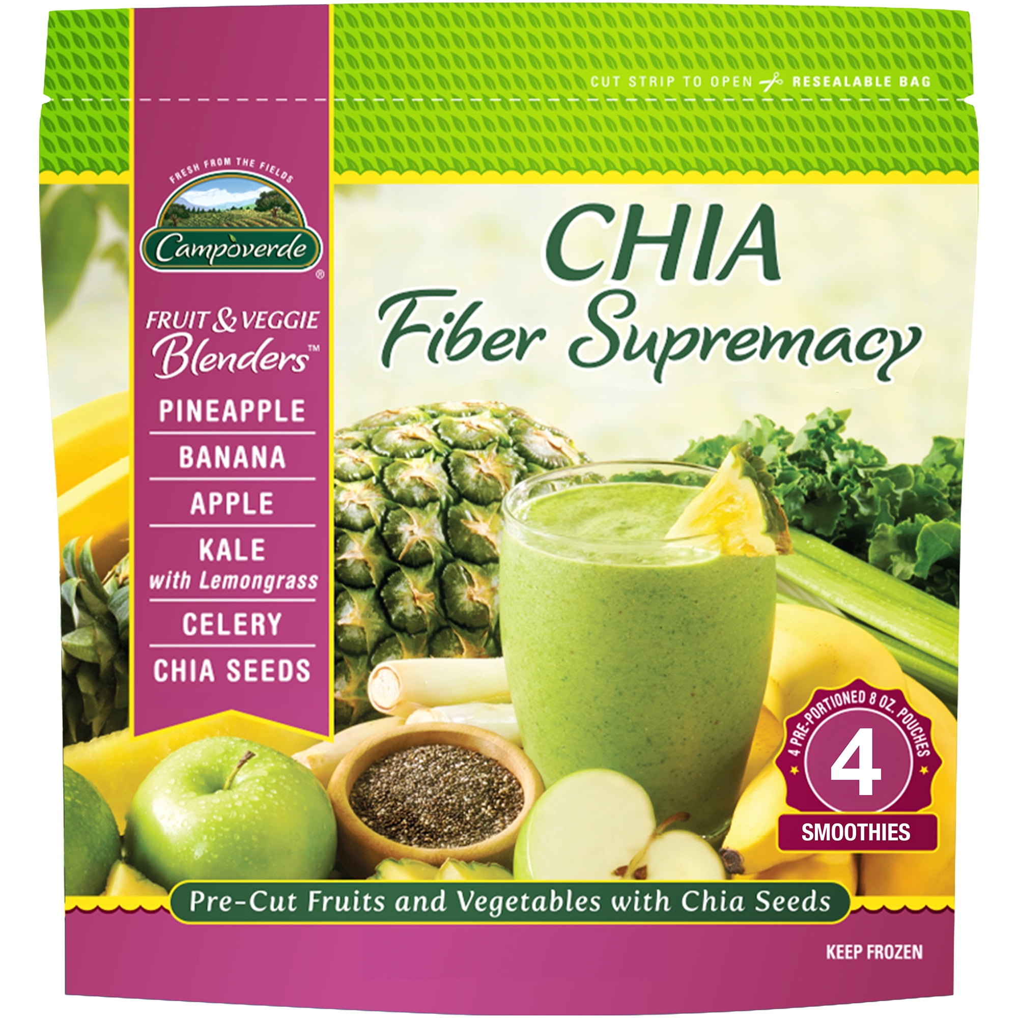 Campoverde 4 Packs Frozen Fruit & Veggie Smoothie Mix, Chia Fiber Supremacy with Pineapple, 32 oz