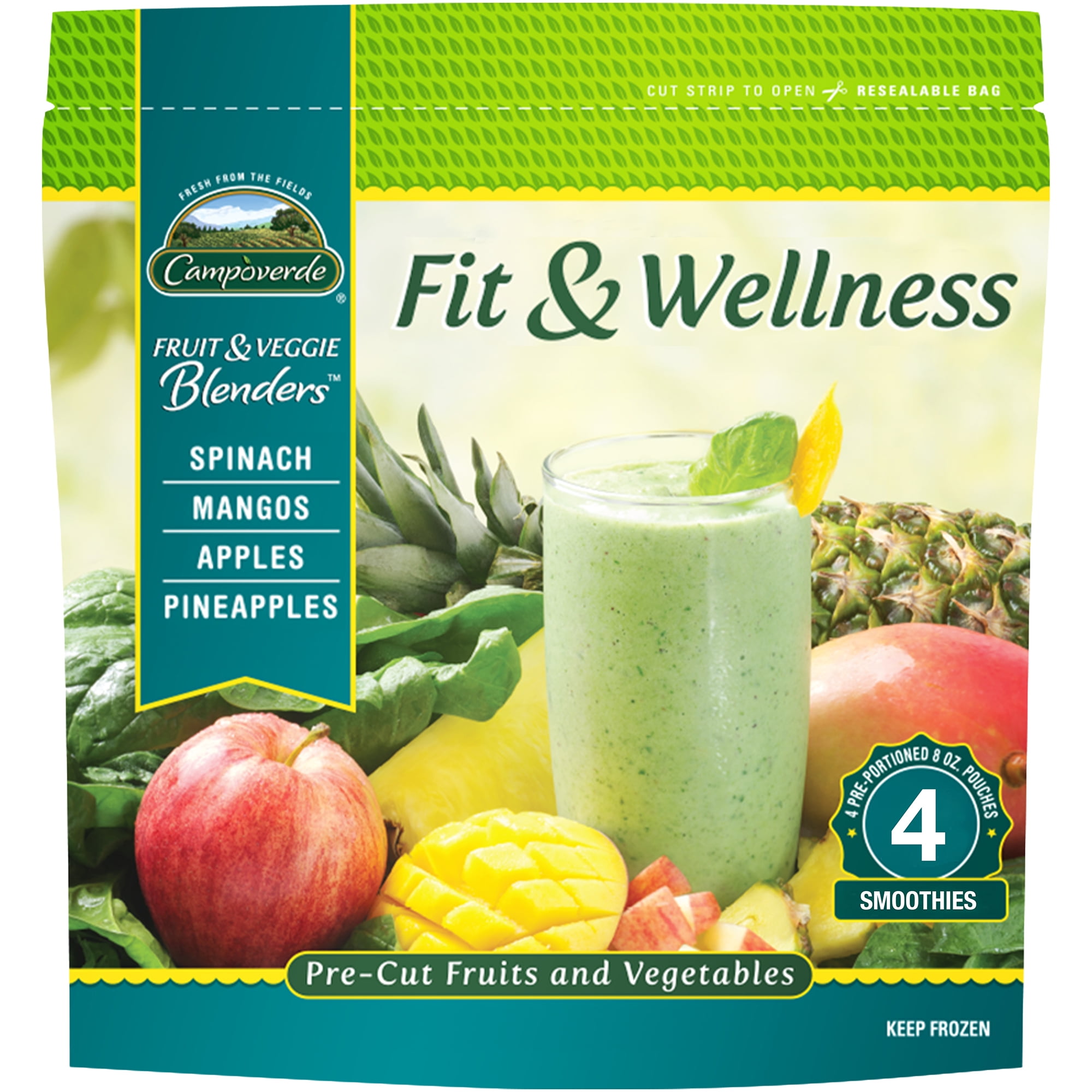 Campoverde 4 Packs Frozen Fruit & Veggie Smoothie Mix, Fit & Wellness, No Added Sugar, 32 oz